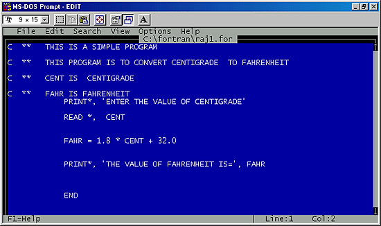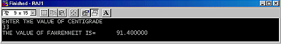 value on the screen displays as: THE VALUE OF FAHRENHEIT IS=