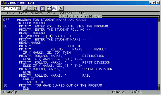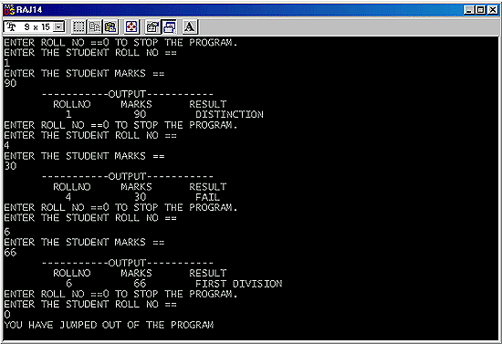 | Note: This example contains Input as READ, IF, ELSE IF, ELSE, GO TO, PRINT, STOP and END Statements. |