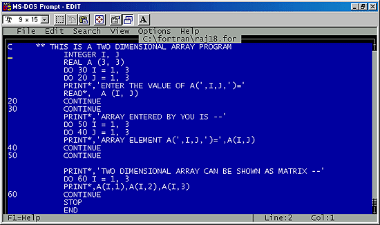 | Here the second subscript is set to 1 when the first subscript changes from 1 to 4; the second subscript is then set to 2, first subscript changes from 1 to 4. The first subscript changes rapidly and the second less rapidly. Arrays are stored column wise in Fortran language. |
