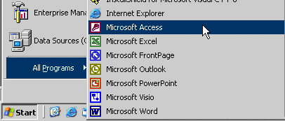 As such, to start this program, you could click Start -> (All) Programs -> Microsoft Access: |