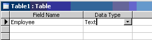 let's enter in Employee in the Field Name column and choose Text from