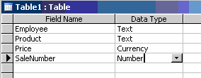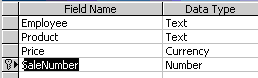 | o Field Name: SaleNumber, Data Type: Number |