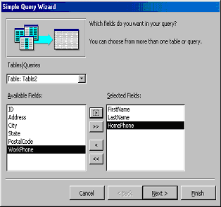 drop-down Tables/Queries menu. Select the fields by clicking