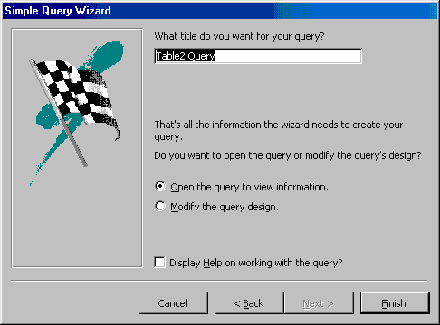 | 2. On the next window, enter the name for the query and click Finish. |