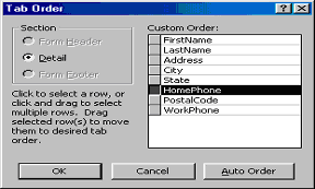 the form by selecting View|Tab Order... from the menu bar. Click