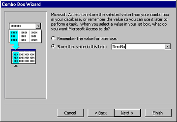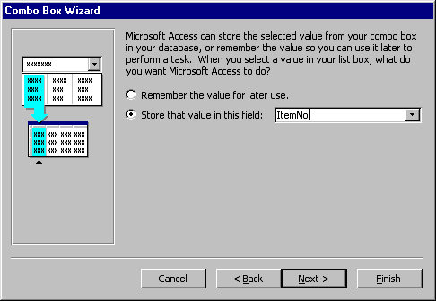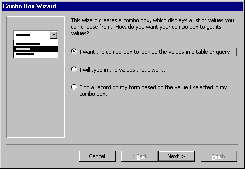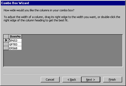 the outline on the form. The combo box wizard dialog box will appear. |