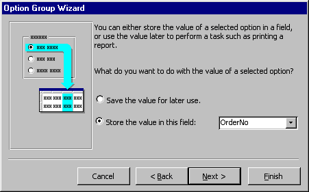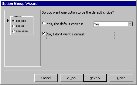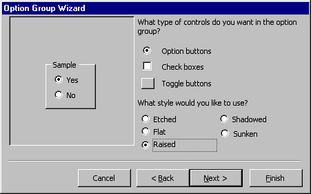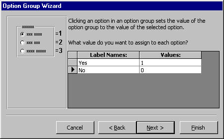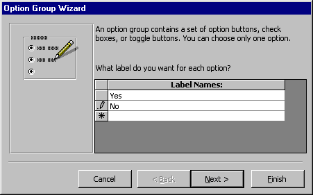 the mouse. The option group wizard dialog box will appear. |