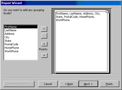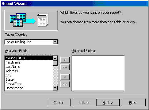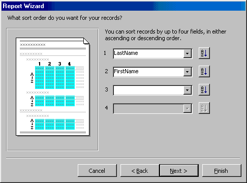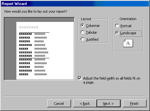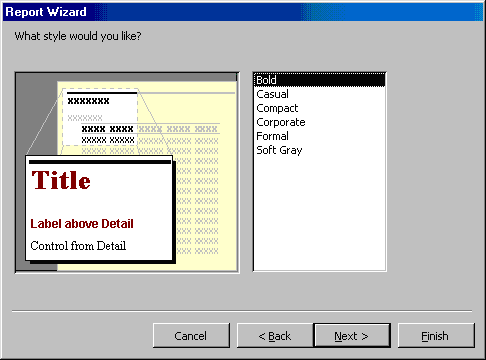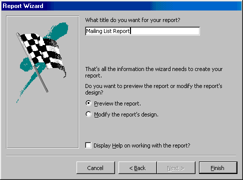 it in either Print Preview or Design View mode. Click the Finishbutton to create the report. |