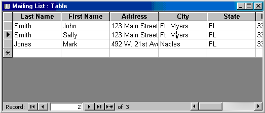 the City field of the second record that displays the value "Ft. Myers"