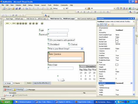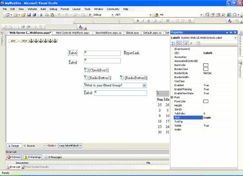| After setting the Text property of the web server controls the web page in Design View will be displayed as given in the figure below. |