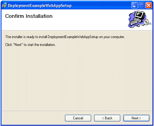 | In the above dialog box, you can also click on the Disk Cost... command button to get an idea of the space required for installing this Web application. Clicking on Next in the above dialog box results in the following dialog box where you are asked to confirm the installation. |