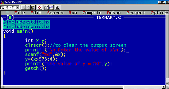 | The operator works as, if exp 1 is evaluated first. If the result is true then exp 2 is executed, otherwise exp 3 is executed. |