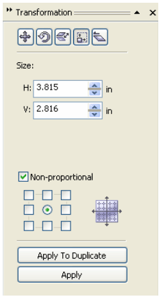 | . Click>Arrange>Transformations>Size or Click Alt+F10 |