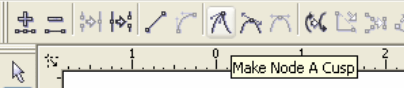 | . Click on "make a node cusp" on the property bar to make node cusp as shown in figure below. |