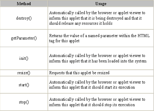 in a Web page or viewed by a Java applet viewer. The Applet class