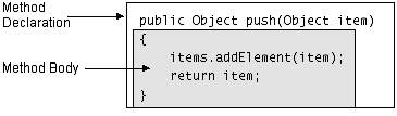 | The method declaration defines all of the method's attributes, such