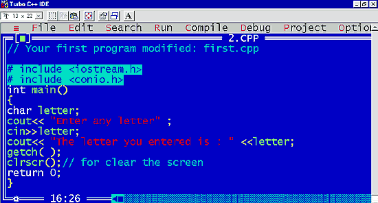 | In the compiler there will be another option called "Run". Just click on this and the program will run from the compiler itself (you needn’t switch back and forth between DOS and the compiler screen). |