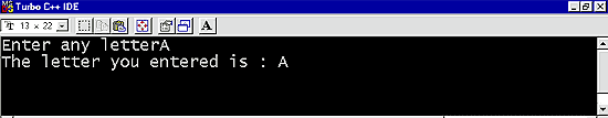 | Output: The program asks the user to enter a letter. The user enters a letter. Then the program displays the typed letter on the screen. |