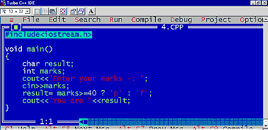 | Program to show the use of conditional operator: |