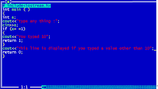 | On the other hand if you type anything other than 1 for test, the compiler will skip the if body, display the last statement and then return 0. The program gets terminated. Learn more in the next section. |