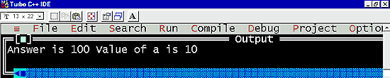 | Hence we find the product of a and store it in a itself. i.e. the value of 100 is stored in the address of a instead of 10 which was originally stored. |