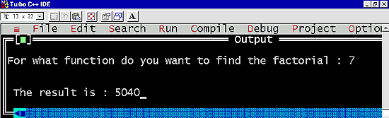 | The best example for recursion is to calculate factorials. In the last program We wrote a function to find the factorial of a number using ‘for’ loop. We’ll now see how to do the same using recursion. |