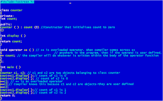 | As in the earlier program, the overloaded operator just increases the count by one. It does the same here. We know that counter is the name of the class. |