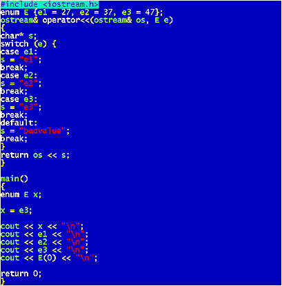 | In the last output statement, we created an invalid enumerator value and then output it. |