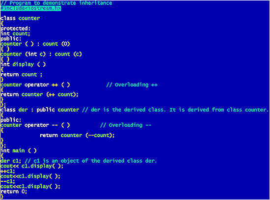 | Remember that classes and objects are a key feature in C++. When we talk of inheritance in C++, we talk of classes. We will have the parent class and the derived class. The derived class inherits all properties of the parent class. |