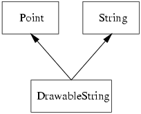 | Therefore we derive a new class DrawableString which inherits properties from Point and String as illustrated in Figure below: |