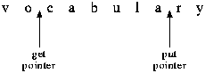 | For example, consider the following sequence of characters as a stream, with the positions of the get and put pointers as marked in Illustration of Get and Put Pointers: |
