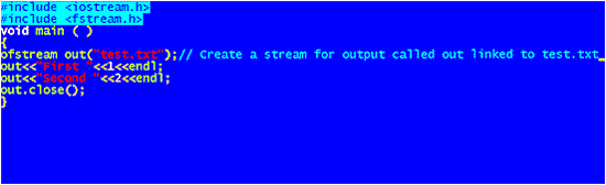 | Hence First and 1 are written to the file. Similarly Second and 2 are written on the next line of the file because of the endl keyword. Finally we close the stream. |