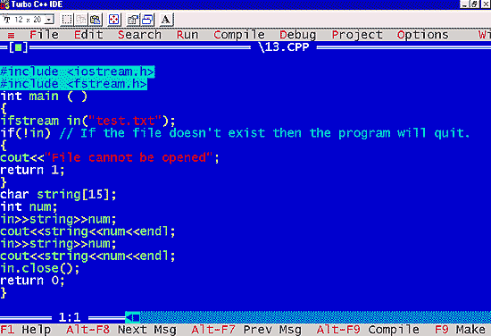 | Similarly in the above program what does the line in>>string>>num ; do? It reads from the stream in and stores what it read in the variable string and num. The process is as follows: |