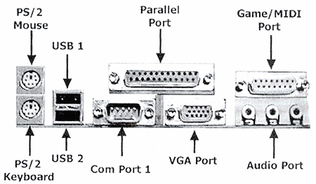 | These are D-type 9 or 25 pin ports called COM ports and round ports called PS/2 ports. |
