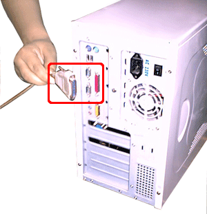 | b. Connect the one end of signal male-cable with D-sub connector to the female socket of your printer. Connect the other end of printer cable to the parallel port on the panel of CPU Box. |