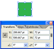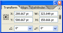 | The Transform panel (Window > Transform) displays information about the location, size, and orientation of one or more selected objects. By typing new values, you can modify the selected objects, their pattern fills, or both. You can also change the transformation reference point and lock the object’s proportions. |