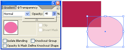 | 2. Set the Opacity option in the Transparency panel or Control panel. |