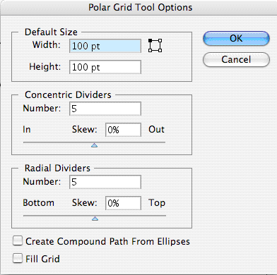 | Set the default size first. The concentric dividers are the number of circles that will be on the polar grid. The radial dividers are the lines that will come out from the centre. |
