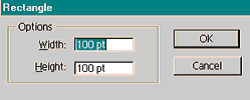 | You can also create a precise shape by clicking once on the document. A window appears allowing you to enter precise dimensions for the rectangle shape. |