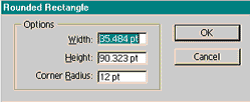 | You can also create a precise shape by clicking once on the document. A window appears allowing you to enter precise dimensions for the rectangle shape and corner radius. |