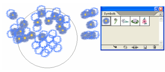 | The symbolism tools let you create and modify sets of symbol instances. You create a symbol set using the Symbol Sprayer tool. You can then use the other symbolism tools to change the density, color, location, size, rotation, transparency, and style of the instances in the set. |