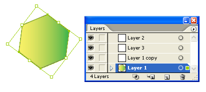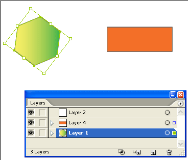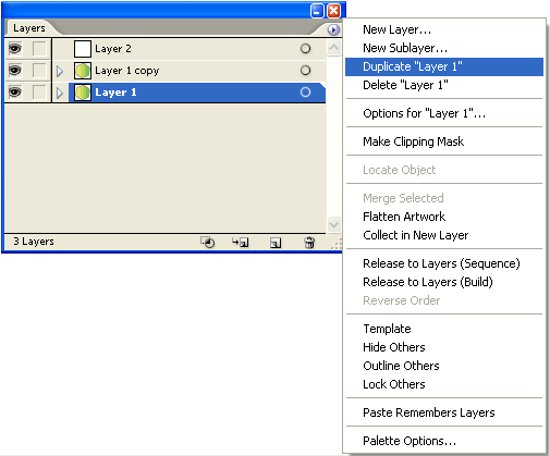 | Many times you need to move objects from one layer to another. Instead of making you copy and paste objects, Illustrator has an intuitive feature built in to the Layers palette specifically for the purpose of moving and copying objects between layers. |