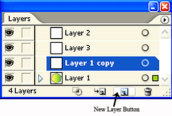 | The easiest way to create a new layer is to click the New Layer button at the bottom of the Layers palette. Illustrator creates the layer and assigns it a name. |