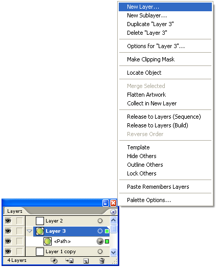| Another way to create a new layer is to select New Layer from the Layers palette menu.