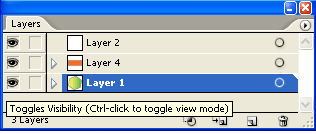 | To hide the layer, click the eye, and the objects in that layer aren't visible in your document. Clicking again in the left box makes the layer visible. |