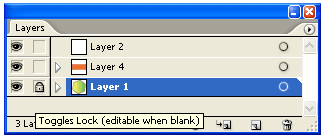 | One of the advantages of using layers is the ability to quickly lock or hide the objects on each layer. Notice that to the left of each layer are two boxes. The left-hand box controls the view, whereas the right-hand box controls locking. An eye in the left box indicates that the layer is fully visible in your document. |