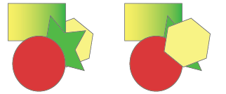 | • Bring to Front--brings the selected object to the front, similar to putting a paper on the top of the pile. (Figure 1) |