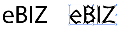| Right (b) Text after free transform. |