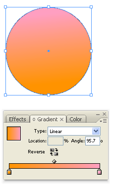 | Gradient Swatch tool lets you adjust the beginning and ending points and angle of gradients within objects. |