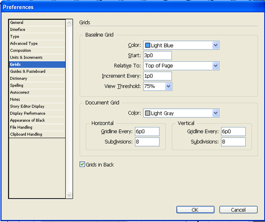 • The baseline grid covers entire spreads, whereas the document grid covers the entire pasteboard.